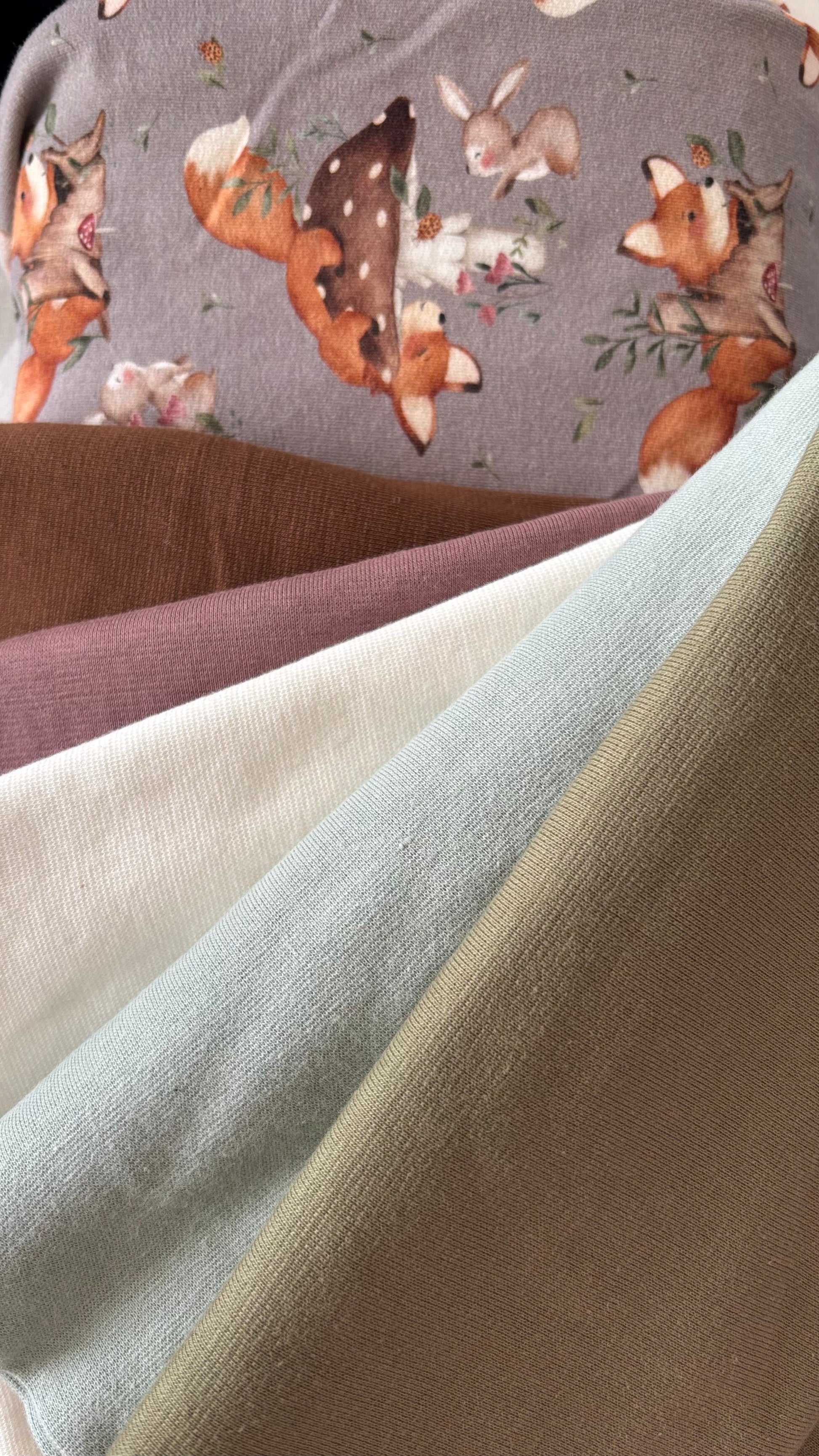 Hergestellt aus zertifizierter Biobaumwolle (kbA, Ökotex 100) bietet der Pullover eine hautfreundliche, atmungsaktive Qualität, die sich besonders für empfindliche Kinderhaut eignet. Die liebevolle Illustration von Waldtieren in der Natur macht ihn zu einem Hingucker für Alltag und besondere Anlässe.