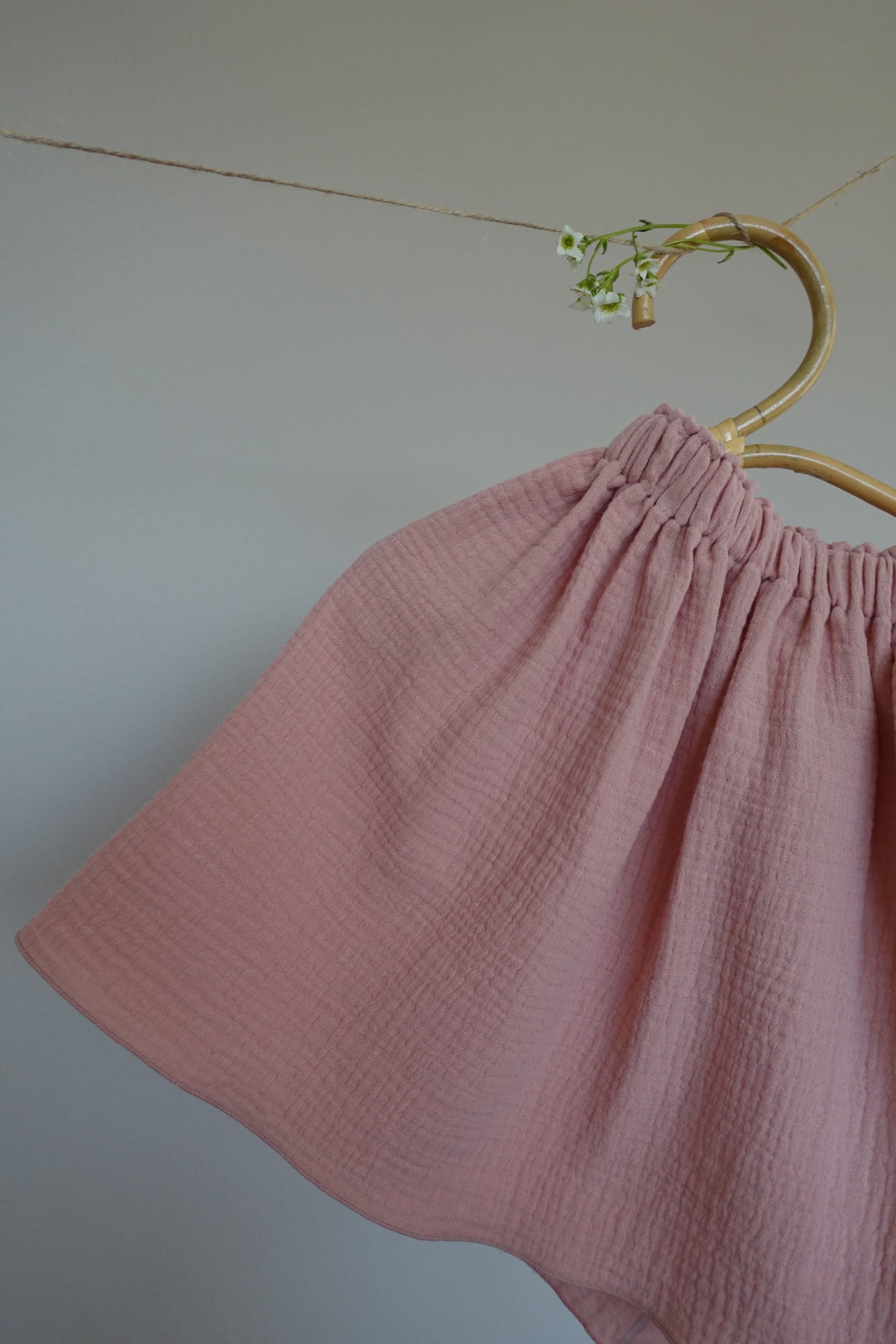 Zart wie ein Sommerwind: Dieser Waldknopf Musselinrock in Altrosa ist ein luftig-leichter Begleiter für sonnige Tage und zarte Kinderträume. Aus weichem, doppellagigem Bio-Baumwoll-Musselin genäht, fällt der Rock locker und angenehm leicht – ideal zum Spielen, Tanzen und Wohlfühlen.