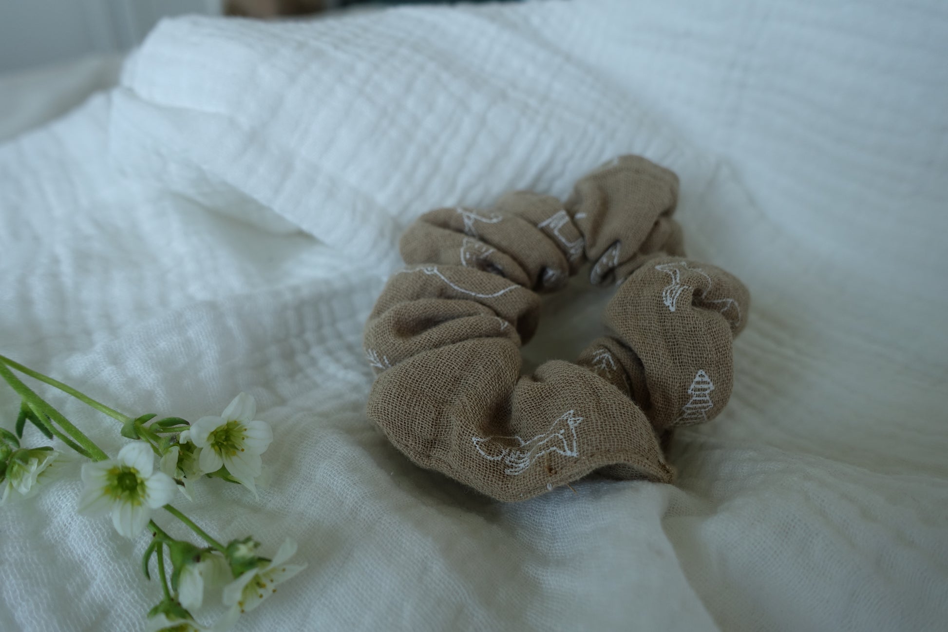 Der weiche Musselin sorgt für guten Halt ohne Ziepen, während die frischen Farben und natürlichen Stoffe jedes Scrunchie zu einem kleinen Lieblingsstück machen. Mit Liebe handgenäht und langlebig verarbeitet – weil auch die kleinsten Dinge besonders sein dürfen.